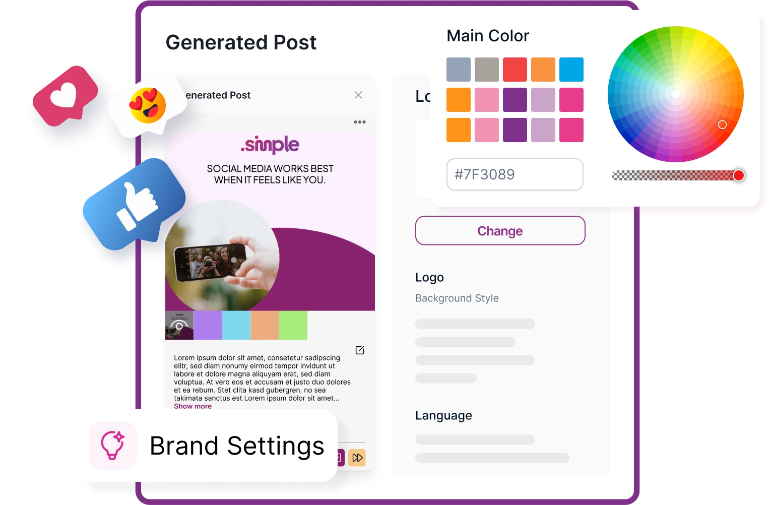 Kein Grafikdesigner oder externe Tools nötig. AI BrandPost erstellt deine Inhalte sofort.